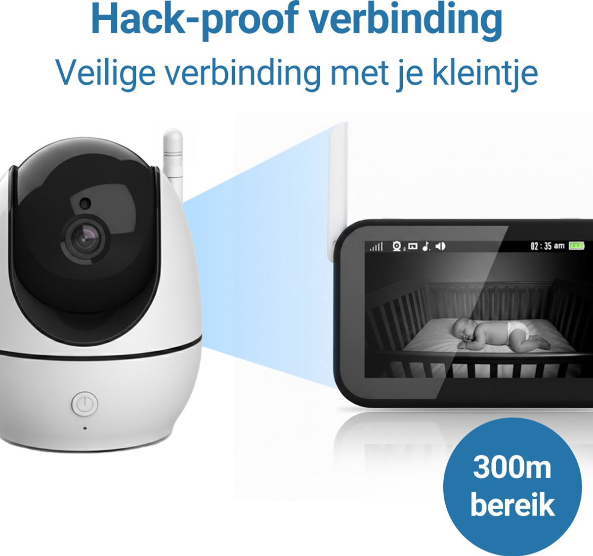 Met een bereik tot 300 meter blijf je verbonden, ook wanneer je je in een andere ruimte bevindt. De ingebouwde slaapliedjes helpen je baby sneller tot rust te komen en zorgen voor een ontspannen slaapomgeving.